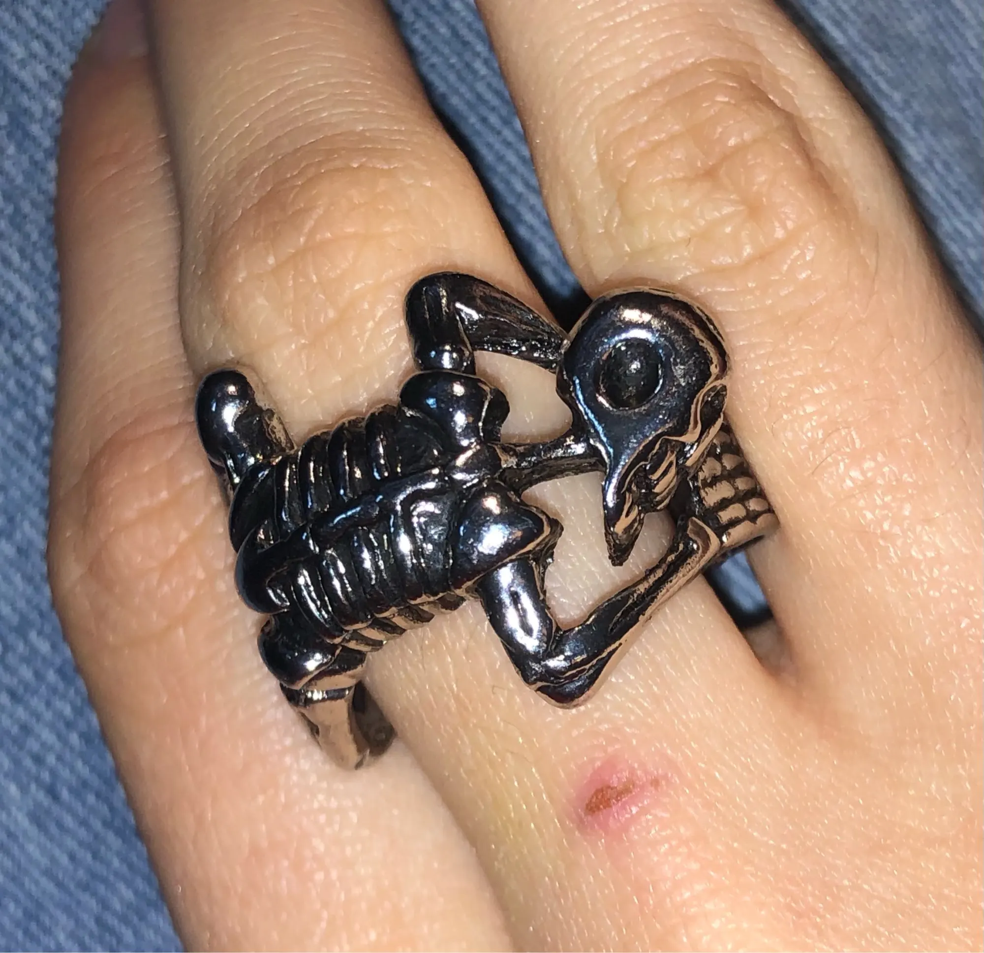 The ring is very cool!! I just do not have words the size fit me perfectly, so 18,5 - 19 Great glitters and terribly detailed I have unjustified love for skeletons In addition, a funny photo with a cat P.S. The cat is not mine
